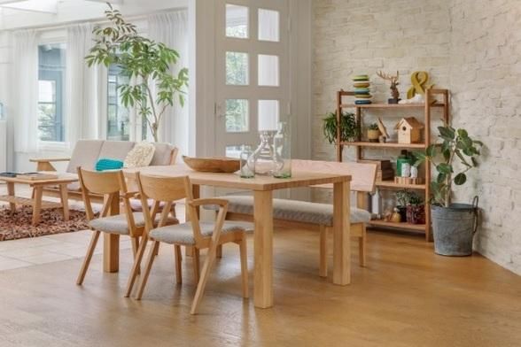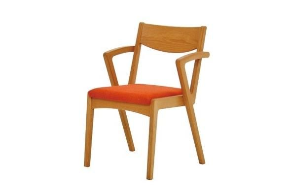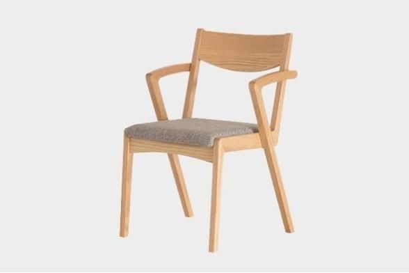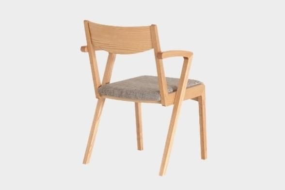 スタッキング機能を持つ「TASTO アームチェア」。直線と曲線のバランスが絶妙な木の美しさを活かしたデザイン。アームを兼ねるL字型の後脚が特徴で、スタッキングが可能であるのも、どこから見ても美しい軽快なフォルムもこの後脚が鍵となっています。