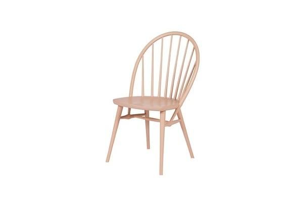 背もたれのカーブが特徴の優雅で軽やかなデザインは、曲木に適し、細くても丈夫なブナの特性を活かすことで実現されています。