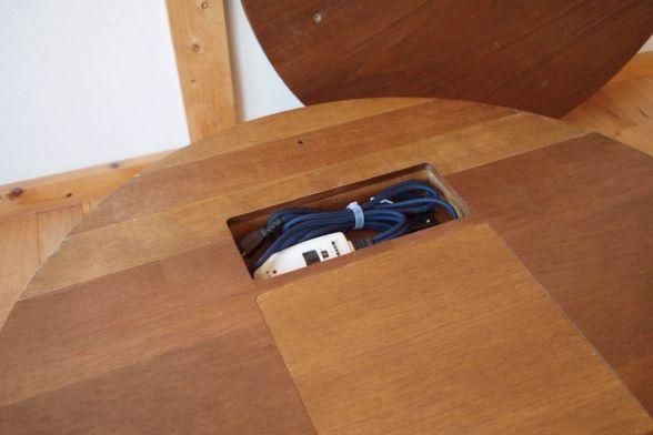 こたつの本体は、布団が挟めるように2重の天板になっています。 天板を外すと、ヒーター用のコード収納が付いています。 また、布団を付けずに使用する際に下側からボルトで天板を固定する事が出来る様になっています。