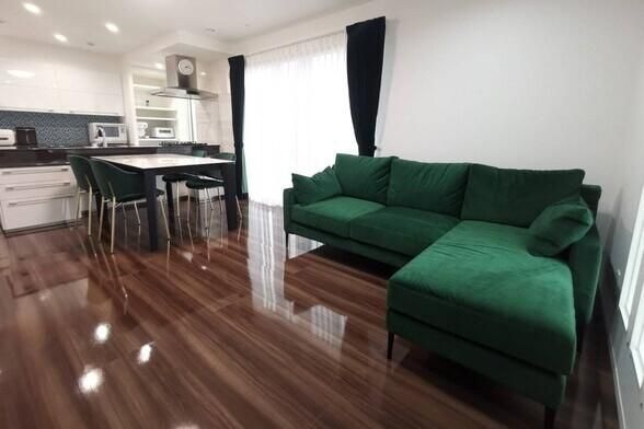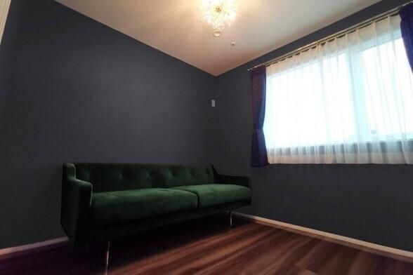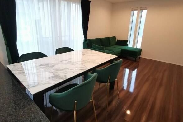 テーブルの天板は石目をセレクト頂き、とってもモダンな印象に‼ベロア生地がさらに空間に高級感をプラスしています‼