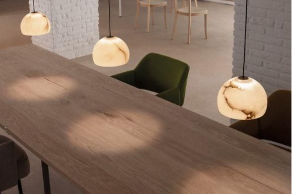 カルピエンのトレードマークはバルセロナ製ということ。同社はできるだけ地元の素材を使おうと考えており、その結果、NEILペンダント・ライトが生まれました。明るい色をもち、透けて見えるこの素材によって、NEILランプから放たれる光は特別な温かみを持ち、また、素材の色が1つのランプ・シェードでも場所により微妙に異なっているため放たれる光を非常にバラエティーに富んだものとする効果を生んでいます。