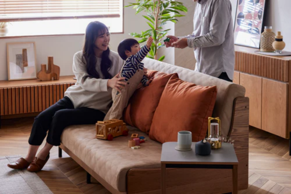 ソファには欠かせない座り心地の良さと耐久性を実現するために、中材には特許技術で製造された「ライトウェーブ」を採用しています。座り心地は、ほどよい硬さ。沈み込みすぎない座面は長時間座っても疲れにくく、正しい姿勢も立ち上がりもサポートします。