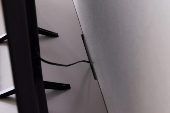 引き出し2杯分の収納力に加え、縦型のゲームやAV機器などを収納できるフラップ扉収納。フラップ扉は、ゆるやかに開閉する「ソフトダウンステー」を採用。また、閉めたままでもリモコン操作が可能な完全隠蔽ガラスのフラップ扉です。