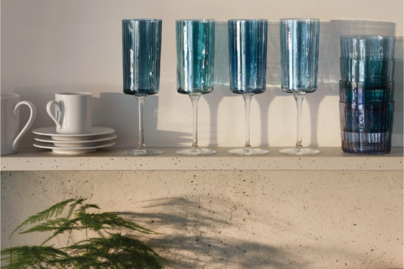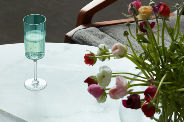 宝石のファセットの美しさを表現したシャンパングラス