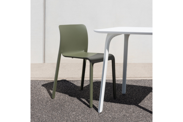 エアーモールド成型による丸みを帯びたフォルムスタッキングチェア。